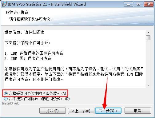 6.选择“我接受许可协议中的全部条款”,然后点击“下一步”