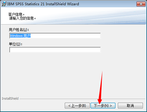 7.用户姓名和单位选择默认或者随意填写即可,然后点击“下一步”