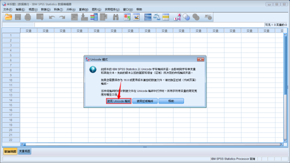 22.首次打开SPSS 21软件,会弹出“Unicode 方式”对话框,建议选择“使用 Unicode 编码”